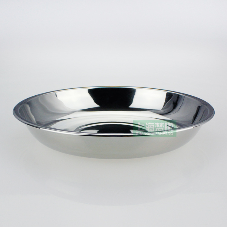 Stainless steel 304 round dish fruit dumpling plate Non-magnetic canteen fast food tray Hotel tableware dish code bucket